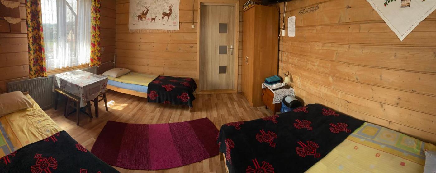 Pokój Czteroosobowy ze wspólną łazienką. This quadruple room features a shared bathroom, and heating. The quadruple room offers a wardrobe, a barbecue, parquet floors, a flat-screen TV, as well as garden views. The unit has 3 beds. Pokój Czteroosobowy - 4 osobowy. Powierzchnia pokoju ok.: 16 mkw. ;