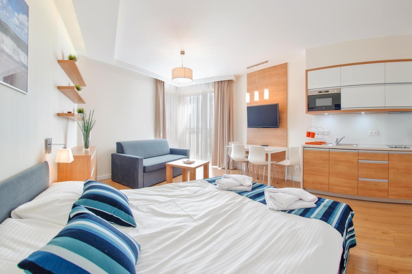 Apartament typu studio z balkonem. Meals can be prepared in the kitchenette, which comes with a stovetop, a refrigerator, a dishwasher and kitchenware. The studio provides a washing machine, a dining area, as well as a private bathroom featuring a shower and a hairdryer. The unit offers 2 beds. Studio - 4 osobowy. Powierzchnia pokoju ok.: 26 mkw. ;