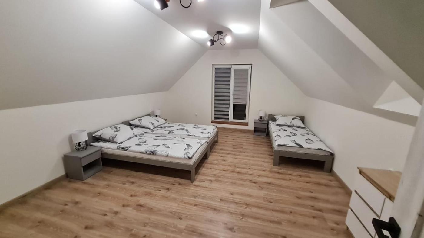 Dom z 2 sypialniami. Featuring a private entrance, this air-conditioned holiday home comprises 1 living room, 2 separate bedrooms and 1 bathroom with a walk-in shower and a hairdryer. Guests can make meals in the kitchen that is equipped with a stovetop, a refrigerator, a dishwasher and kitchenware. Boasting a terrace with garden views, this holiday home also provides soundproof walls and a flat-screen TV. The unit offers 5 beds. Dom wakacyjny - 7 osobowy. Powierzchnia pokoju ok.: 60 mkw. ;