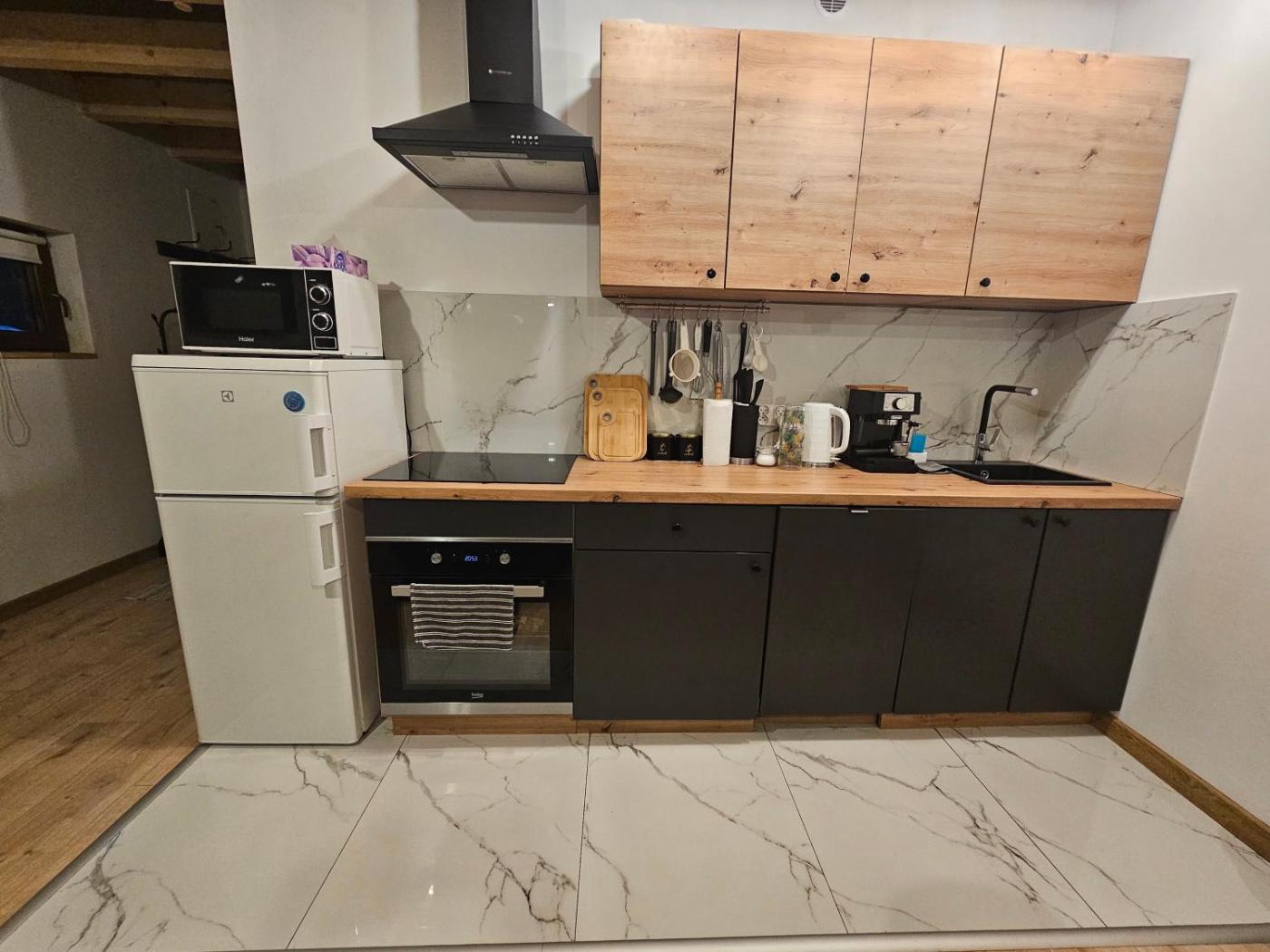 Domek z 2 sypialniami. This chalet features a fireplace. Boasting a private entrance, this chalet features 1 living room, 2 separate bedrooms and 2 bathrooms with a bath and a shower. Guests will find a stovetop, a refrigerator, a dishwasher and kitchenware in the well-equipped kitchen. The chalet also comes with a barbecue. Featuring a terrace with garden views, this chalet also features a washing machine and a flat-screen TV with satellite channels. The unit has 5 beds. Domek - 6 osobowy. Powierzchnia pokoju ok.: 50 mkw.