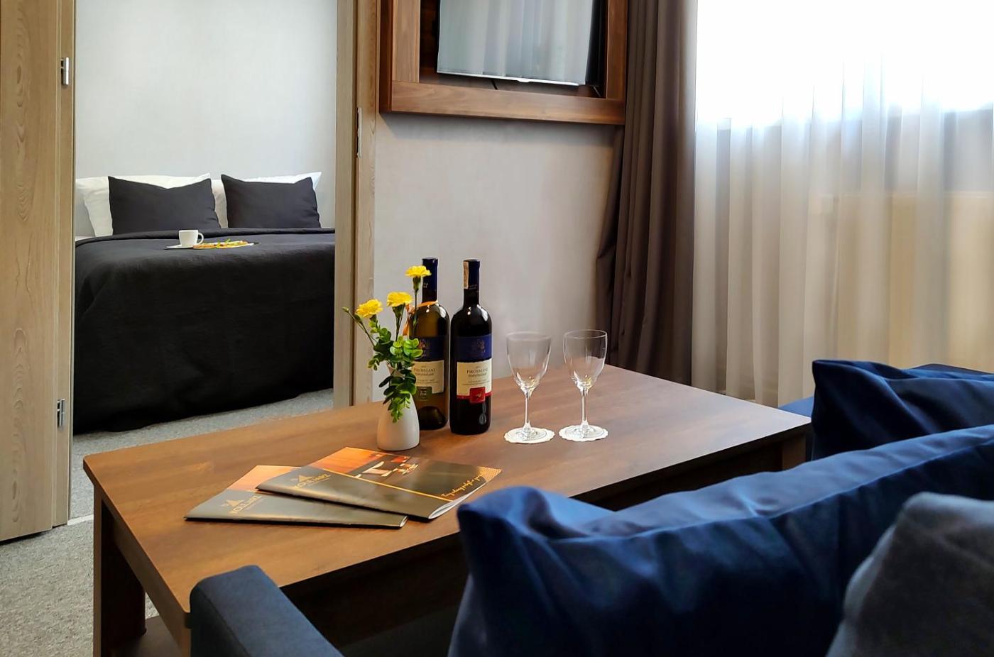 Apartament. Apartament ten mieści salon, oddzielną sypialnię oraz łazienkę z prysznicem i bezpłatnym zestawem kosmetyków. Apartament wyposażony jest w minibar oraz telewizor z płaskim ekranem i dostępem do kanałów kablowych. Dla Gości przygotowano wino lub szampana. Z okien roztacza się widok na ogród. Ta opcja zakwaterowania zapewnia 1 łóżko. Apartament - 3 osobowy. Powierzchnia pokoju ok.: 32 mkw. ;