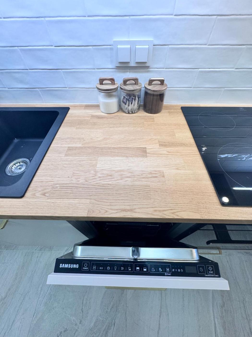 W apartamencie z 1 sypialnią zapewniono salon z telewizorem z płaskim ekranem, kuchnię z pełnym wyposażeniem oraz łazienkę (1).