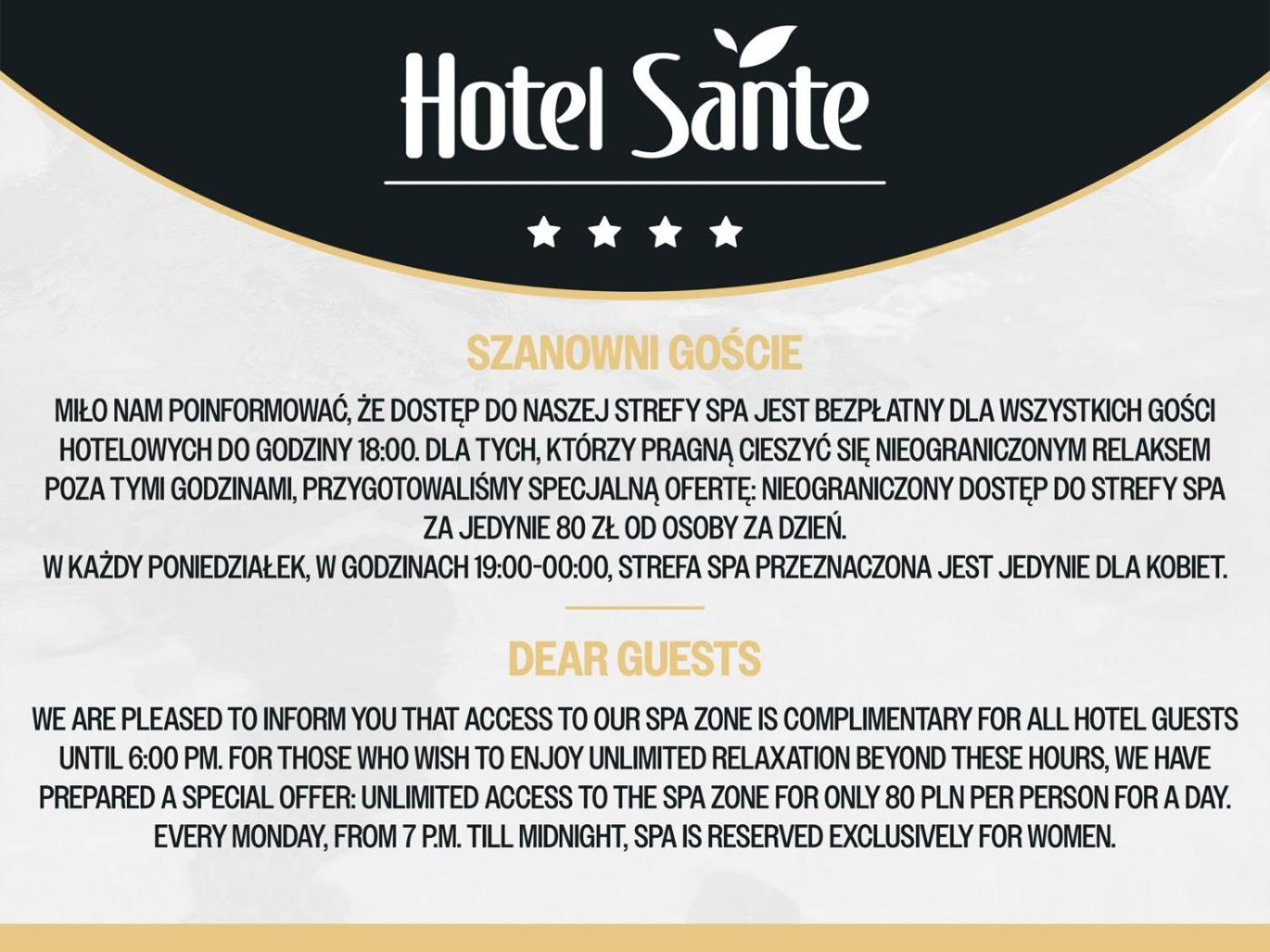 Ladies Night – w każdy poniedziałek od godziny 19:00 sauna i basen są dostępne wyłącznie dla kobiet. Dzieci w wieku poniżej 16 lat nie mogą korzystać z basenu i sauny. Strefa SPA jest bezpłatna dla gości hotelowych do godziny 18:00 Po 18:00 strefa SPA jest płatna. Opłata wynosi 80 PLN od osoby.W momencie zameldowania wymagane jest okazanie ważnego dowodu tożsamości ze zdjęciem oraz karty kredytowej. Życzenia specjalne zostaną zrealizowane w zależności od dostępności, a ich realizacja może podlegać dodatkowej opłacie.
