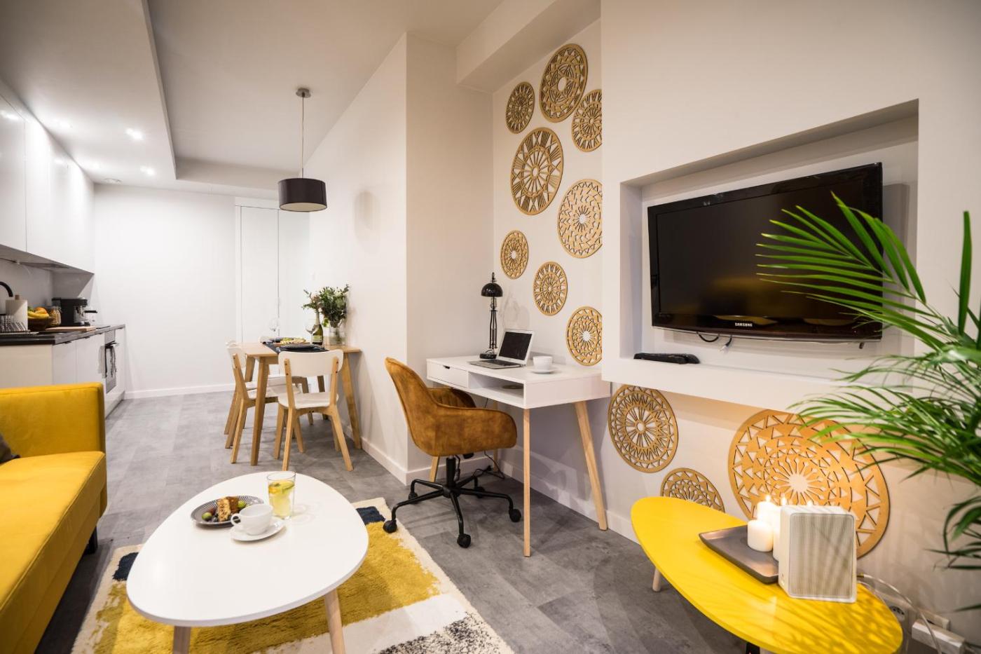 Apartament typu Superior. Featuring a private entrance, this air-conditioned apartment comprises 1 living room, 1 separate bedroom and 1 bathroom with a bath and a shower. Guests can make meals in the kitchen that comes with a stovetop, a refrigerator, a dishwasher and an oven. Boasting a balcony with city views, this apartment also provides a washing machine and a flat-screen TV with cable channels. The unit offers 2 beds. Apartament - 4 osobowy. Powierzchnia pokoju ok.: 30 mkw.