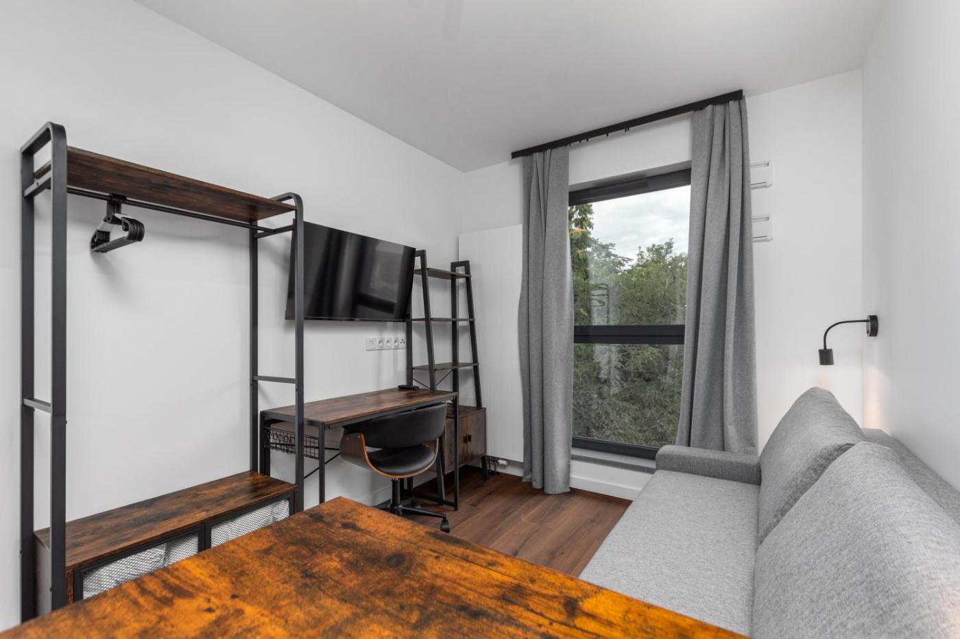 Studio. The studio has a private bathroom fitted with a shower and a hairdryer. Guests can make meals in the kitchenette that has a stovetop, a refrigerator and kitchenware. The studio features a washing machine, a dining area, an electric kettle, a flat-screen TV with streaming services, as well as a quiet street view. The unit has 1 bed. Studio - 2 osobowy. Powierzchnia pokoju ok.: 16 mkw. ;